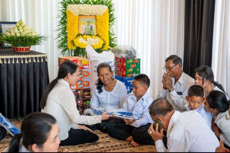 ការគោរពវិញ្ញាណក្ខន្ធវីរយុទ្ធជន៖ លោកជំទាវបណ្ឌិត បានអញ្ជើញគោរពវិញ្ញាណក្ខន្ធចំពោះវីរយុទ្ធជនដែលបានពលីជីវិតក្នុងសមរភូមិ ដើម្បីការពារបូរណភាពទឹកដី និងសុខសន្តិភាពរបស់ជាតិមាតុភូមិ។