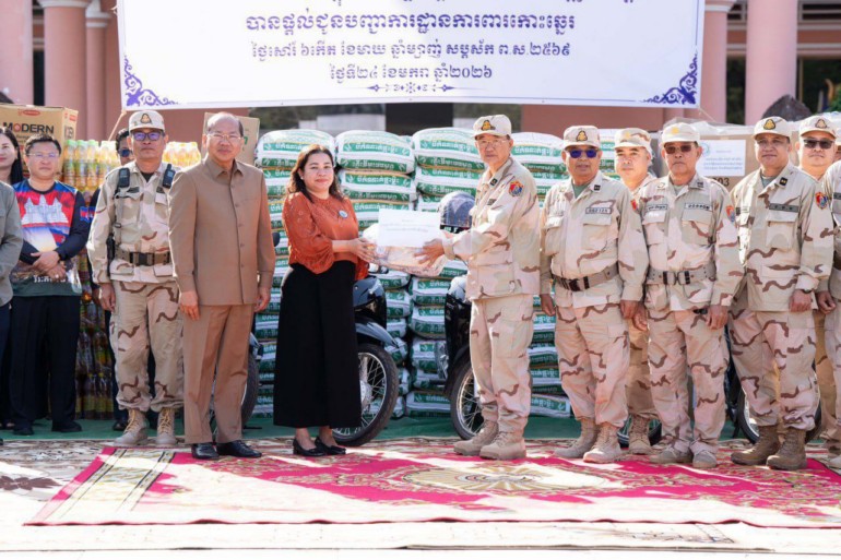 ​ស្បៀងអាហារ អង្ករ ១០​តោន​, មី ១០០​កេស​, ត្រីងៀត ១០០​គី​ឡូ​, ទឹកត្រី ១០០​យួរ​, ទឹក​សុទ្ធ ១៥០​យួរ​